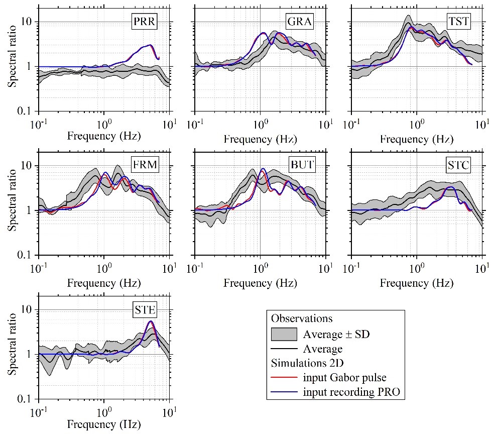 圖2 Mygdonian盆地觀測記錄和模擬結(jié)果的傅里葉譜比對比