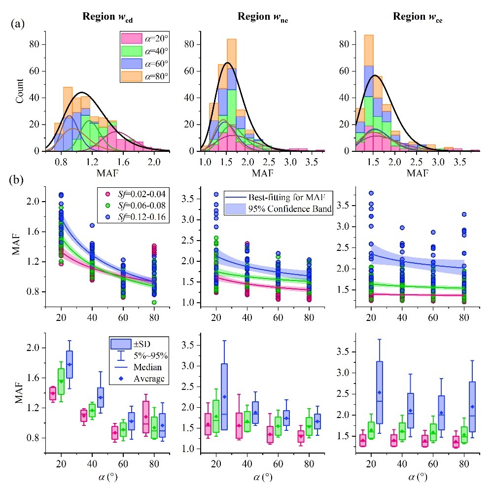 圖3 河谷邊緣傾角α對不同區(qū)域的放大系數(shù)MAF的影響