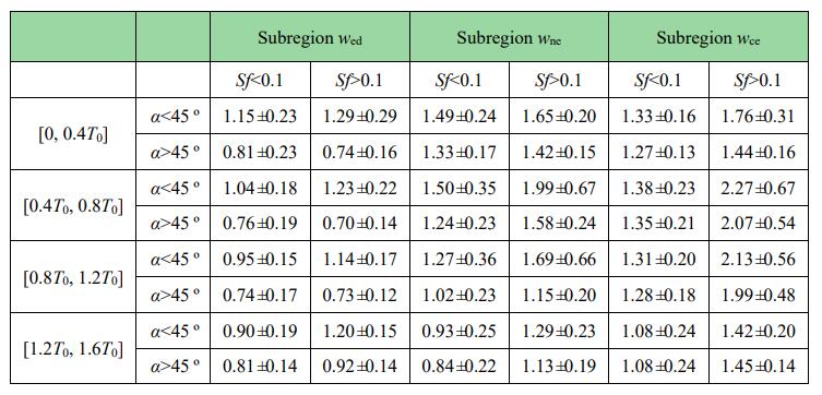 表1 各子區(qū)域內(nèi)不同周期放大系數(shù)