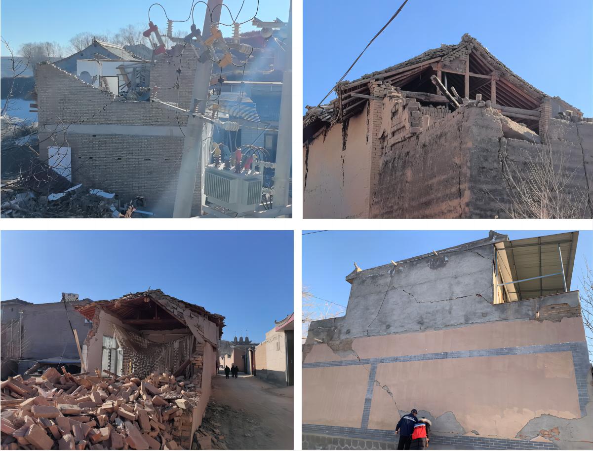 3. 劉集鄉(xiāng) 團(tuán)結(jié)村約束砌體結(jié)構(gòu)基本完好。少數(shù)磚木結(jié)構(gòu)發(fā)生溜瓦、山墻交叉裂縫等震害,多數(shù)磚木結(jié)構(gòu)嚴(yán)重破壞,出現(xiàn)外縱墻外閃、屋頂局部坍塌等震害。絕大多數(shù)土坯結(jié)構(gòu)倒塌。估計地震烈度:8